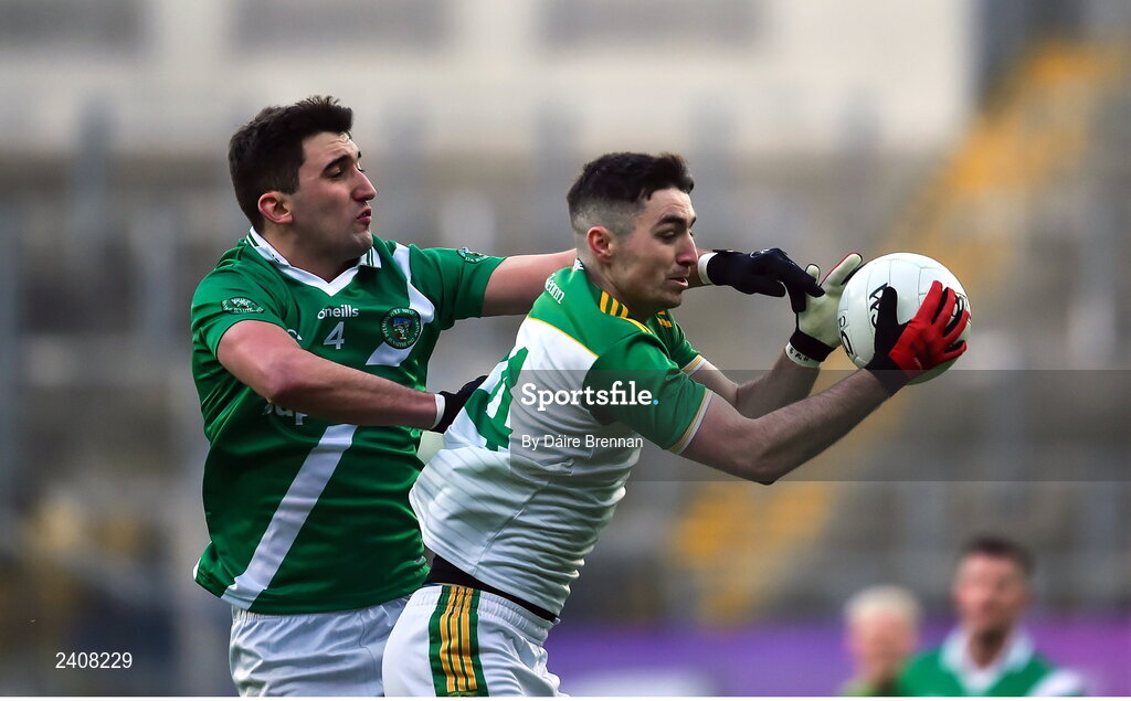 8 January 2023; Danny Tallon of Glen in action against Neil Mulcahy of Moycullen during the AIB GAA Football All-Ireland Senior Club Championship Semi-Final match between Moycullen of Galway and Glen of Derry at Croke Park in Dublin. Photo by Daire Brennan/Sportsfile