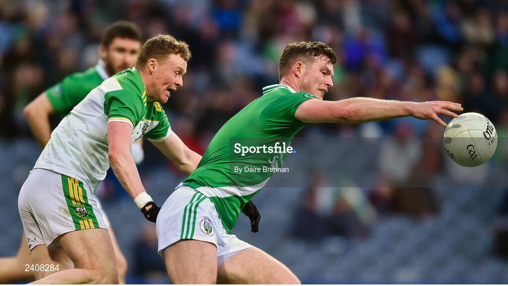 8 January 2023; Owen Gallagher of Moycullen in action against Conor Convery of Glen during the AIB GAA Football All-Ireland Senior Club Championship Semi-Final match between Moycullen of Galway and Glen of Derry at Croke Park in Dublin. Photo by Daire Brennan/Sportsfile