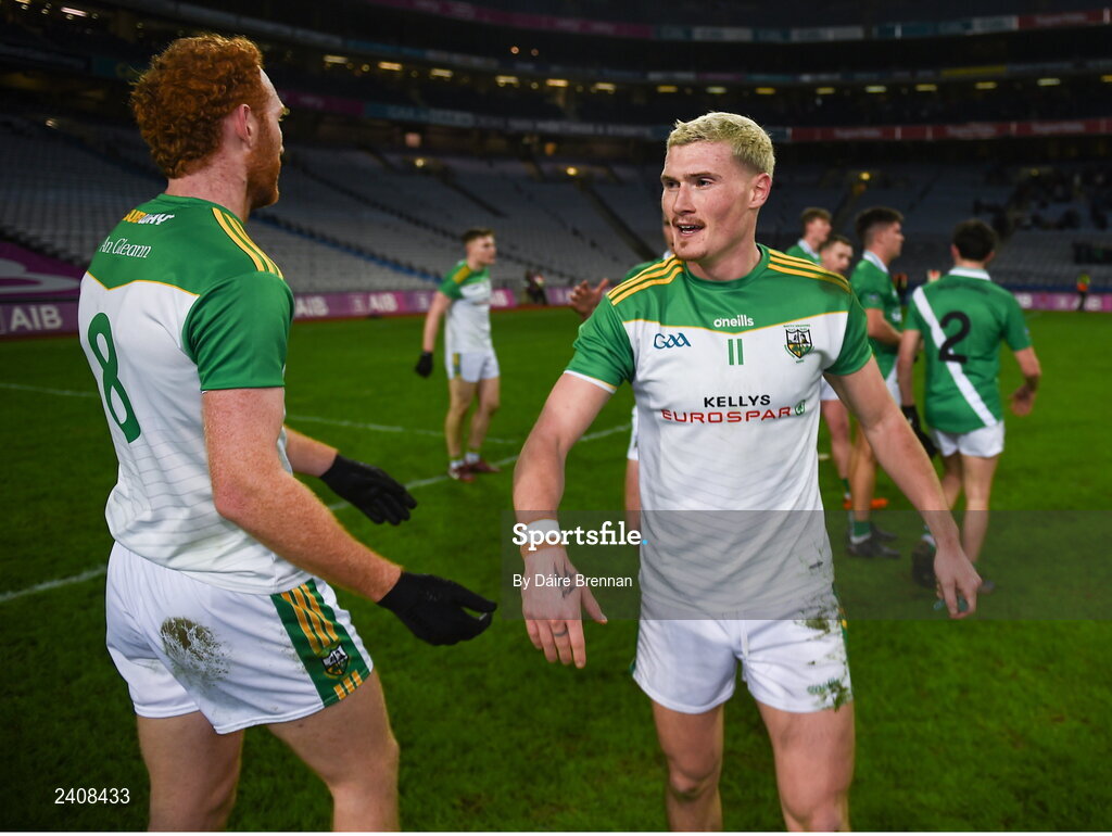 8 January 2023; Conor Glass, left, and Ethan Doherty of Glen celebrate after the AIB GAA Football All-Ireland Senior Club Championship Semi-Final match between Moycullen of Galway and Glen of Derry at Croke Park in Dublin. Photo by Daire Brennan/Sportsfile