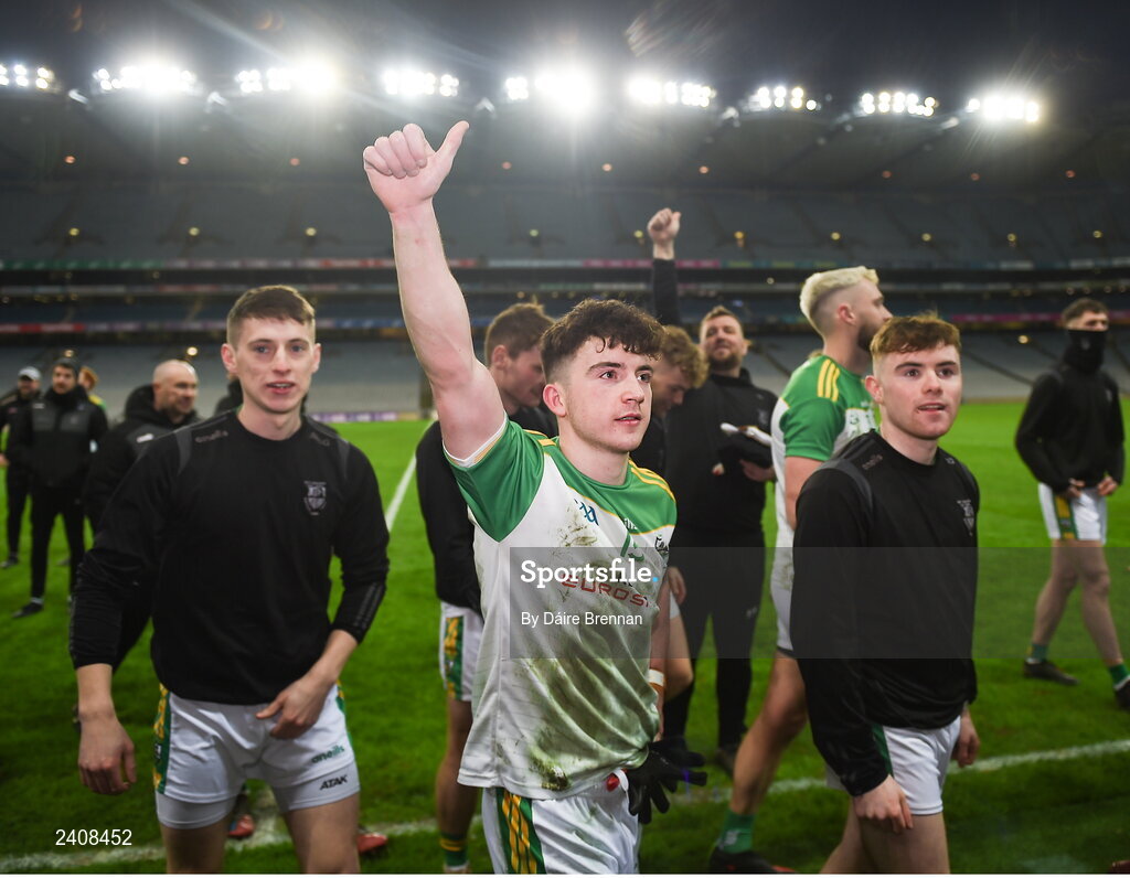 8 January 2023; Conleth McGuckian of Glen celebrates after the AIB GAA Football All-Ireland Senior Club Championship Semi-Final match between Moycullen of Galway and Glen of Derry at Croke Park in Dublin. Photo by Daire Brennan/Sportsfile