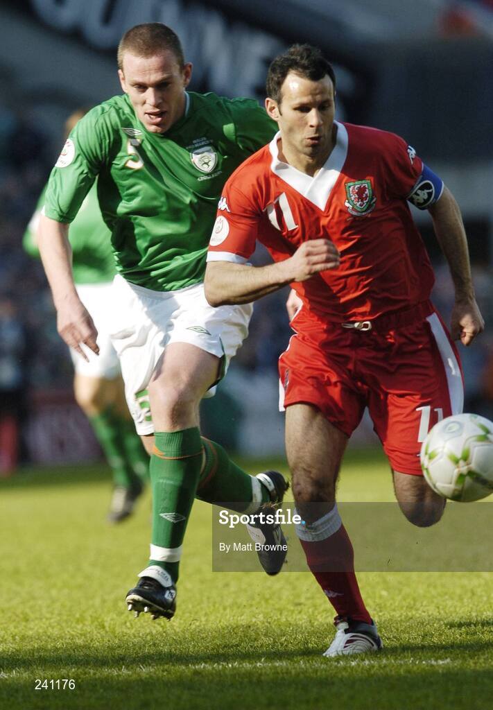 24 March 2007; Ryan Giggs, Wales, in action against Richard Dunne, Republic of Ireland. 2008 European Championship Qualifier, Republic of Ireland v Wales, Croke Park, Dublin. Picture credit: Matt Browne / SPORTSFILE