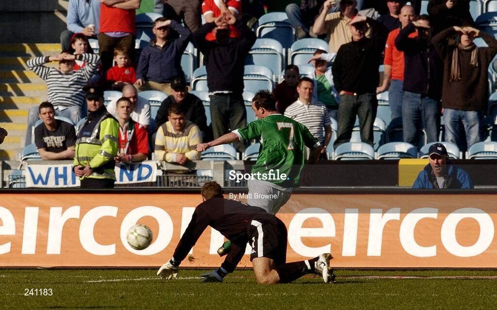 24 March 2007; Stephen Ireland, Republic of Ireland, goes past Wales' goalkeeper Daniel Coyne to score the opening goal of the game. 2008 European Championship Qualifier, Republic of Ireland v Wales, Croke Park, Dublin. Picture credit: Matt Browne / SPORTSFILE