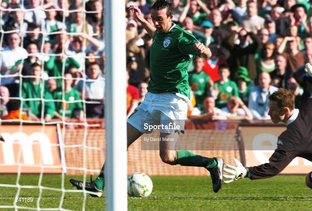 24 March 2007; Stephen Ireland, Republic of Ireland, beats Daniel Coyne, Wales, to score his side's first goal. 2008 European Championship Qualifier, Republic of Ireland v Wales, Croke Park, Dublin. Picture credit: David Maher / SPORTSFILE