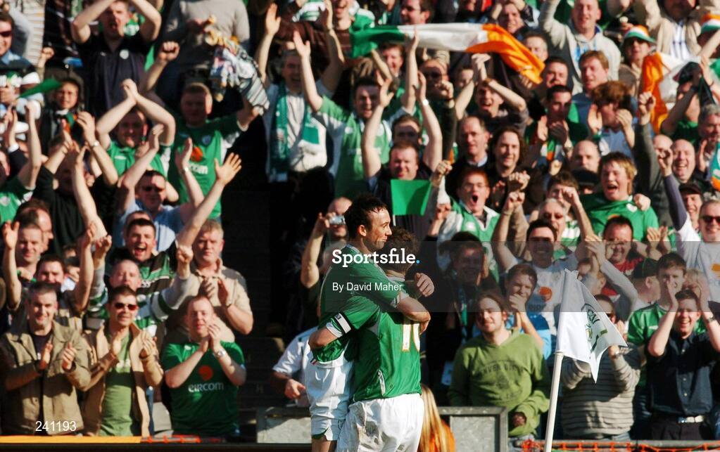 24 March 2007; Stephen Ireland, Republic of Ireland, celebrates after scoring his side's goal with team-mate Robbie Keane. 2008 European Championship Qualifier, Republic of Ireland v Wales, Croke Park, Dublin. Picture credit: David Maher / SPORTSFILE