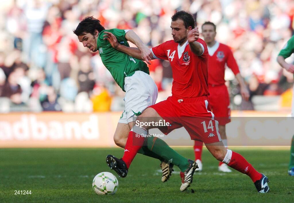 24 March 2007; Jonathan Douglas, Republic of Ireland, in action against Carl Fletcher, Wales. 2008 European Championship Qualifier, Republic of Ireland v Wales, Croke Park, Dublin. Picture credit: David Maher / SPORTSFILE