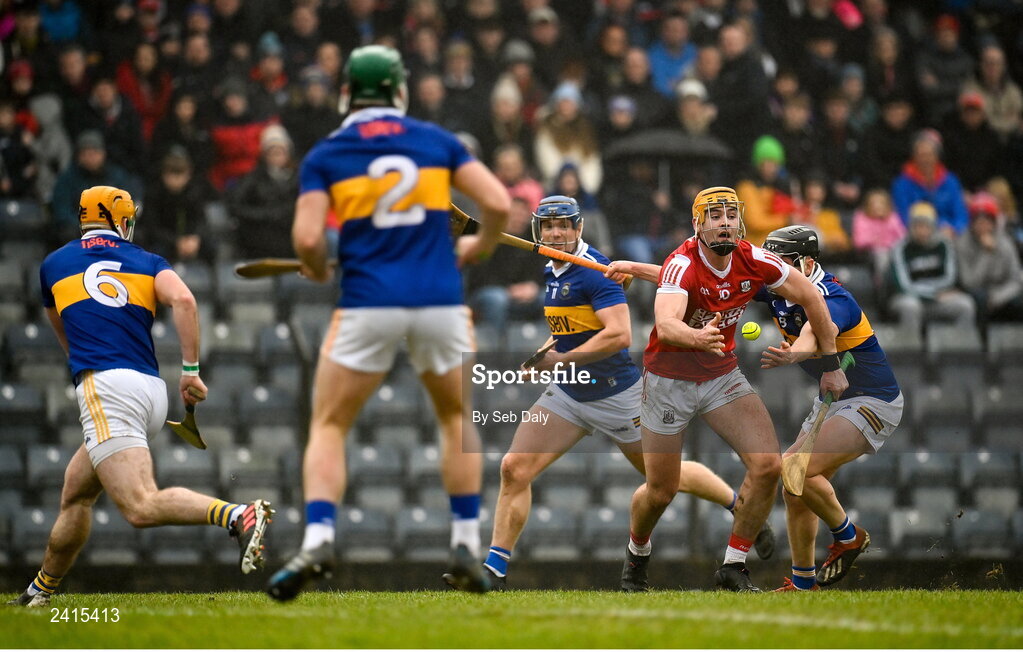 22 January 2023; Sean Twomey of Cork in action against Dan McCormack of Tipperary, right, during the Co-Op Superstores Munster Hurling League Final match between Cork and Tipperary at Páirc Ui Rinn in Cork. Photo by Seb Daly/Sportsfile