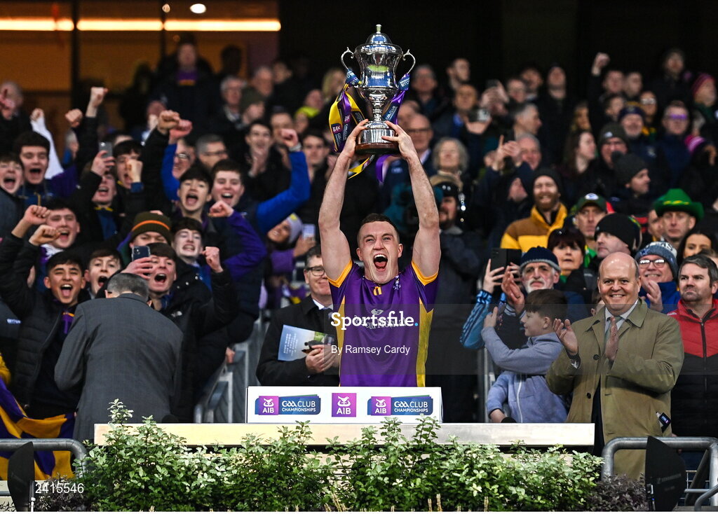 22 January 2023; Kilmacud Crokes captain Shane Cunningham lifts the Andy Merrigan Cup after his side's victory in the AIB GAA Football All-Ireland Senior Club Championship Final match between Watty Graham's Glen of Derry and Kilmacud Crokes of Dublin at Croke Park in Dublin. Photo by Ramsey Cardy/Sportsfile