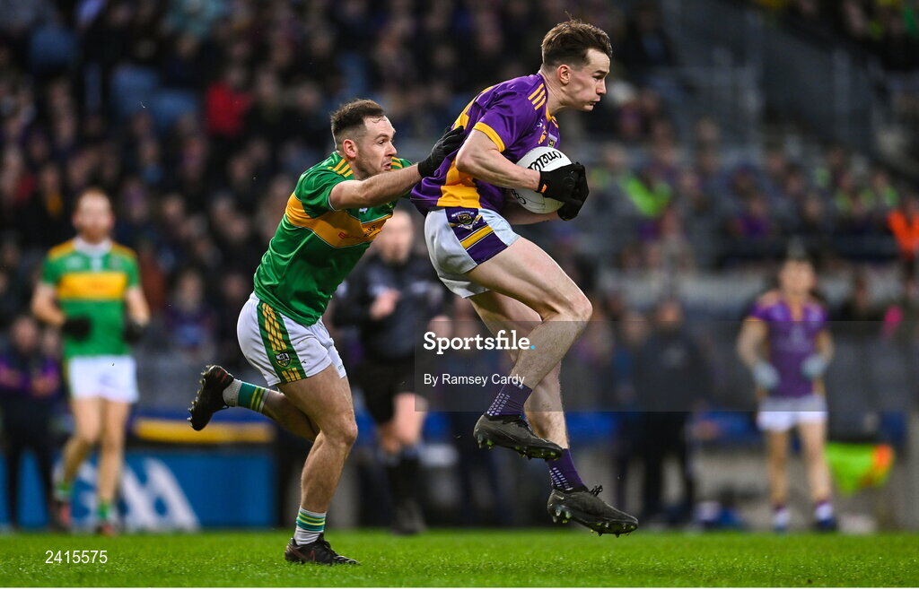 22 January 2023; Dara Mullin of Kilmacud Crokes in action against Connor Carville of Watty Graham's Glen during the AIB GAA Football All-Ireland Senior Club Championship Final match between Watty Graham's Glen of Derry and Kilmacud Crokes of Dublin at Croke Park in Dublin. Photo by Ramsey Cardy/Sportsfile