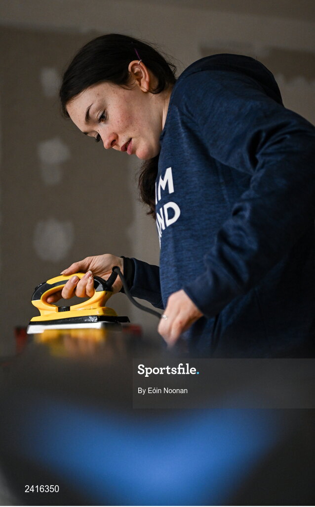 24 January 2023; Team Ireland alpine skier Eábha McKenna preparing her skis before the 2023 Winter European Youth Olympic Festival at Friuli-Venezia Giulia in Udine, Italy. Photo by Eóin Noonan/Sportsfile