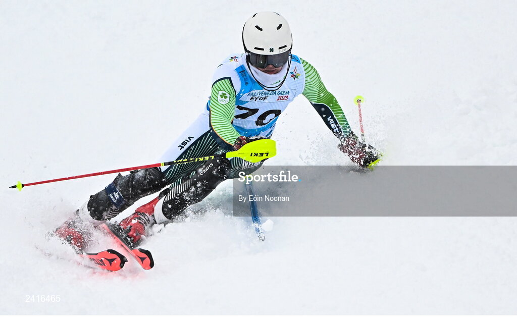 24 January 2023; Ethan Bouchard of Team Ireland competes in the boys slalom event during day one of the 2023 Winter European Youth Olympic Festival at Friuli-Venezia Giulia in Udine, Italy. Photo by Eóin Noonan/Sportsfile