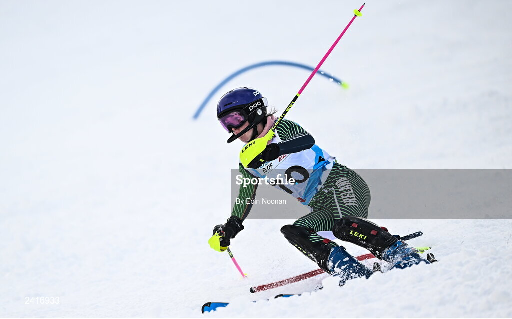 25 January 2023; Eábha McKenna of Team Ireland competing in the girls slalom event during day two of the 2023 Winter European Youth Olympic Festival at Friuli-Venezia Giulia in Udine, Italy. Photo by Eóin Noonan/Sportsfile