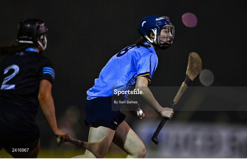 24 January 2023; Caoimhe Kelly of UCD in action against Molly O'Connor of SETU Waterfordduring the Ashbourne Cup Round 2 match between UCD and South East Technological University Waterford at Billings Park, UCD in Dublin. Photo by Sam Barnes/Sportsfile