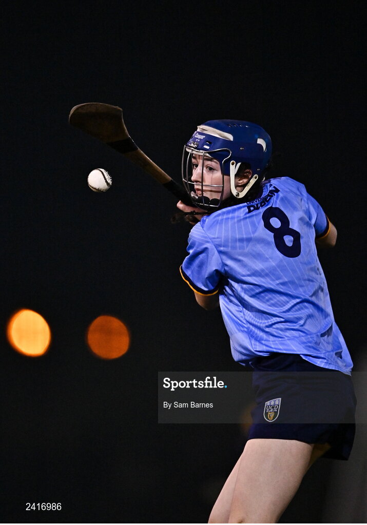 24 January 2023; Caoimhe Kelly of UCD takes a free during the Ashbourne Cup Round 2 match between UCD and South East Technological University Waterford at Billings Park, UCD in Dublin. Photo by Sam Barnes/Sportsfile