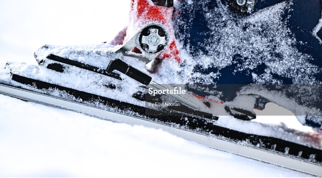 26 January 2023; A detailed view of ski boots and ski's during the girls giant slalom event during day three of the 2023 Winter European Youth Olympic Festival at Friuli-Venezia Giulia in Udine, Italy. Photo by Eóin Noonan/Sportsfile