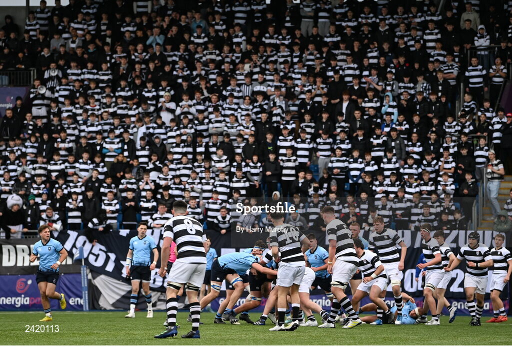 29 January 2023; A general view of match action during the Bank of Ireland Leinster Rugby Schools Senior Cup First Round match between St Michael’s College and Belvedere College at Energia Park in Dublin. Photo by Harry Murphy/Sportsfile