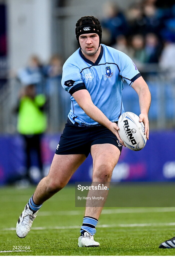 29 January 2023; Riain Coogan of St Michael's College during the Bank of Ireland Leinster Rugby Schools Senior Cup First Round match between St Michael’s College and Belvedere College at Energia Park in Dublin. Photo by Harry Murphy/Sportsfile