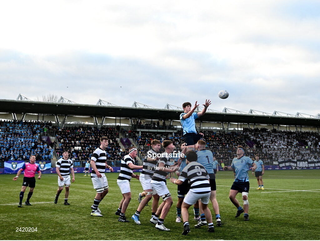 29 January 2023; David Walsh of St Michael's College takes possession in a lineout during the Bank of Ireland Leinster Rugby Schools Senior Cup First Round match between St Michael’s College and Belvedere College at Energia Park in Dublin. Photo by Harry Murphy/Sportsfile