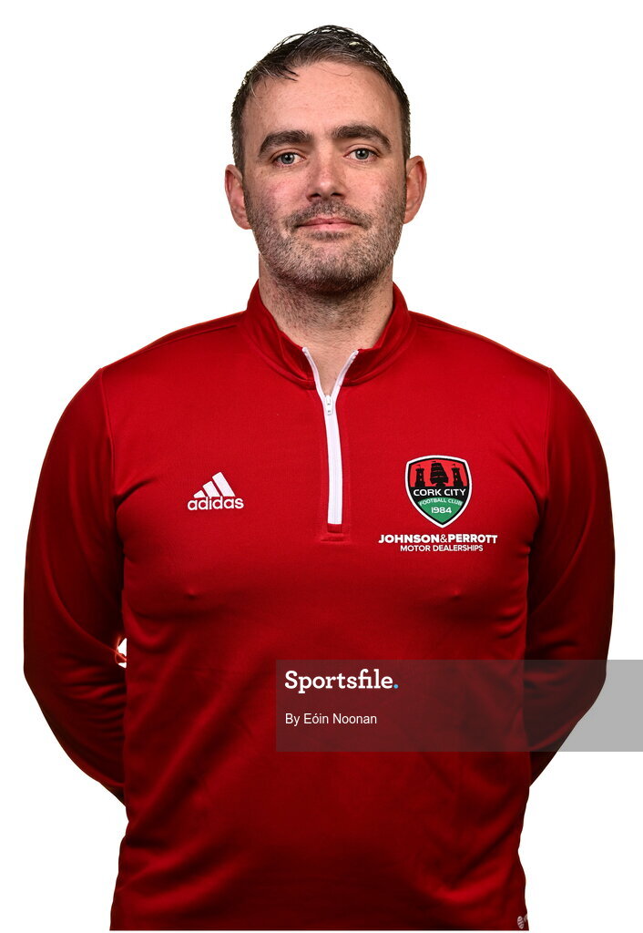 31 January 2023; Assistant manager Richie Holland poses for a portrait during a Cork City squad portrait session at Bishopstown Stadium in Cork. Photo by Eóin Noonan/Sportsfile