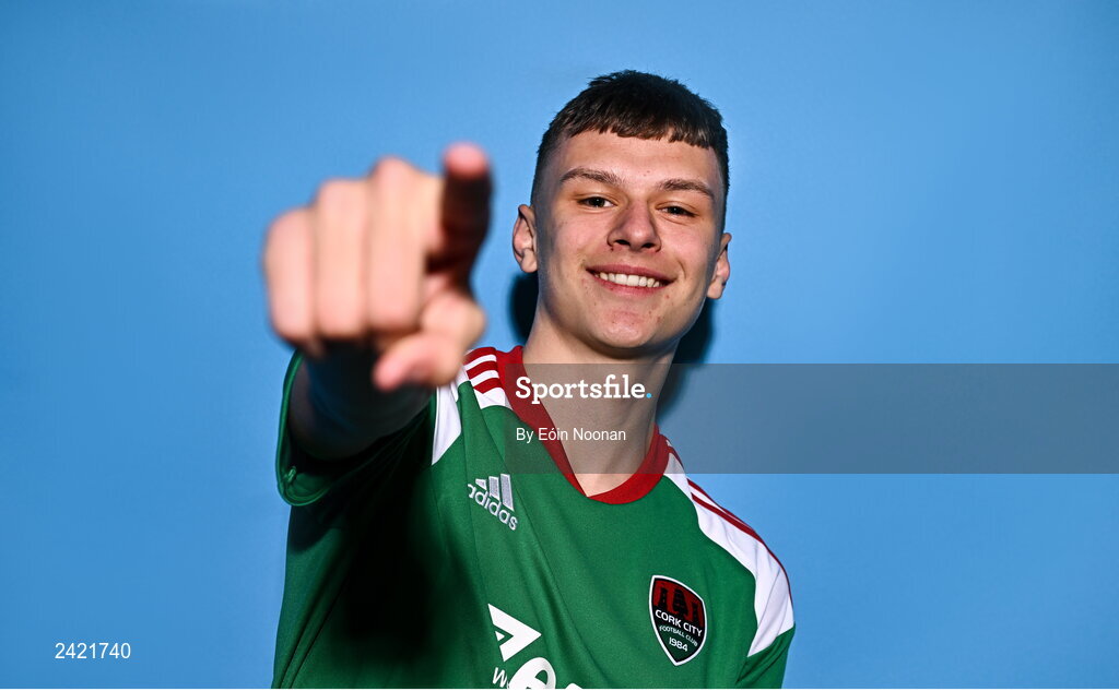 31 January 2023; Joe O'Brien-Whitmarsh poses for a portrait during a Cork City squad portrait session at Bishopstown Stadium in Cork. Photo by Eóin Noonan/Sportsfile