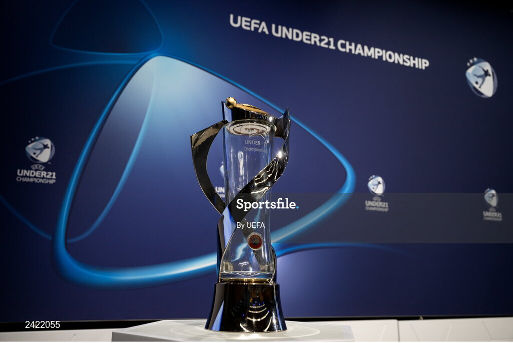 2 February 2023; A view of the UEFA European Under-21 Championship trophy ahead of the UEFA European Under-21 Championship 2025 Qualifying Round Draw at the UEFA headquarters, The House of European Football in Nyon, Switzerland. Photo by Kristian Skeie - UEFA/UEFA via Sportsfile