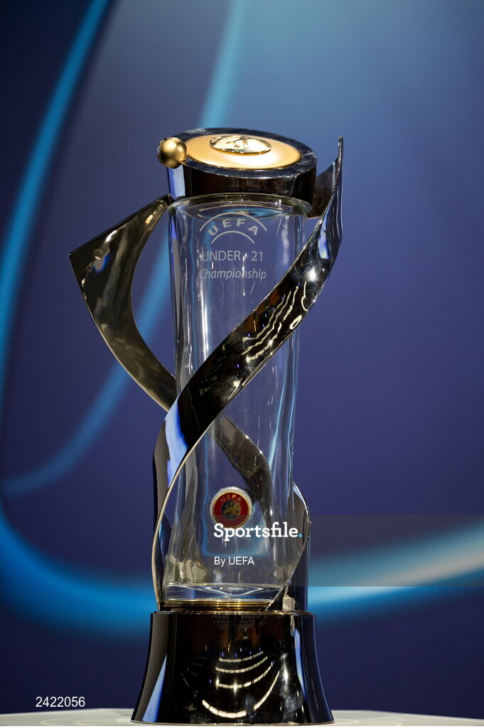 2 February 2023; A view of the UEFA European Under-21 Championship trophy ahead of the UEFA European Under-21 Championship 2025 Qualifying Round Draw at the UEFA headquarters, The House of European Football in Nyon, Switzerland. Photo by Kristian Skeie - UEFA/UEFA via Sportsfile