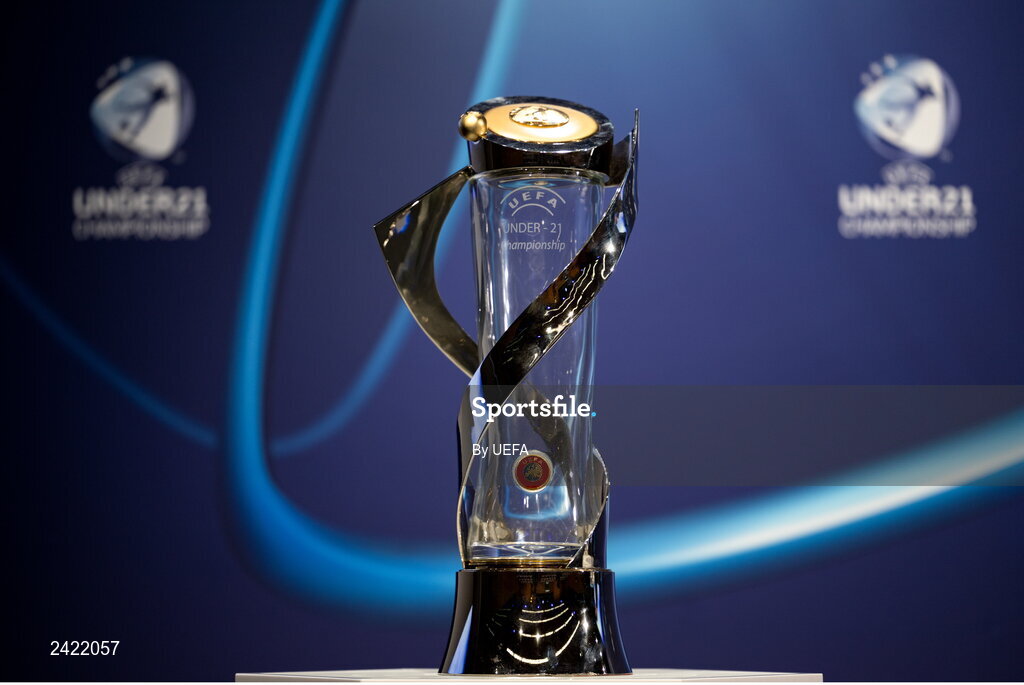 2 February 2023; A view of the UEFA European Under-21 Championship trophy ahead of the UEFA European Under-21 Championship 2025 Qualifying Round Draw at the UEFA headquarters, The House of European Football in Nyon, Switzerland. Photo by Kristian Skeie - UEFA/UEFA via Sportsfile