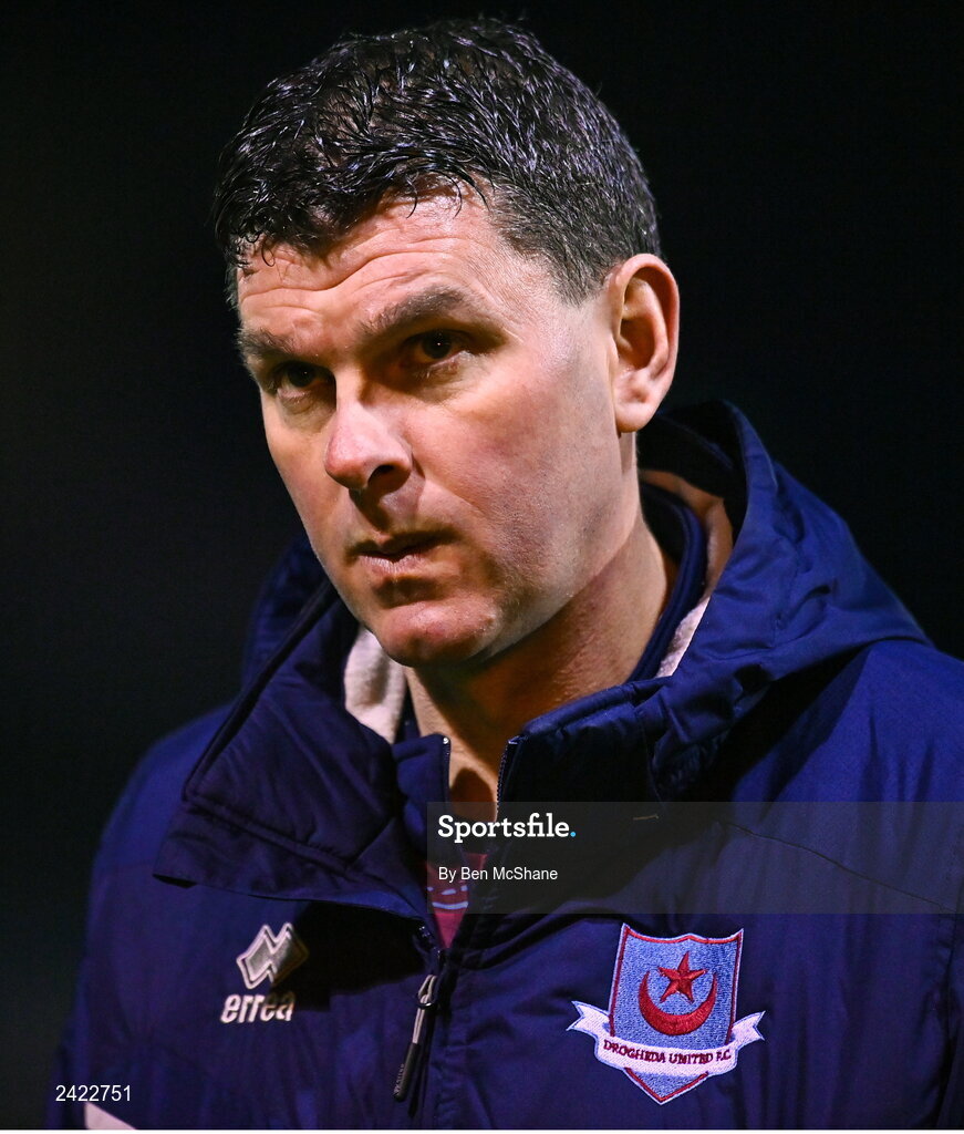 3 February 2023; Drogheda United manager Kevin Doherty before the Jim Malone Cup match between Drogheda United and Dundalk at Weaver's Park in Drogheda, Louth. Photo by Ben McShane/Sportsfile