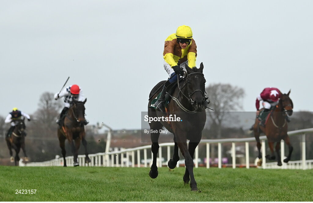 4 February 2023; Galopin Des Champs, with Paul Townend up, on their way to winning the Paddy Power Irish Gold Cup on day one of the Dublin Racing Festival at Leopardstown Racecourse in Dublin. Photo by Seb Daly/Sportsfile