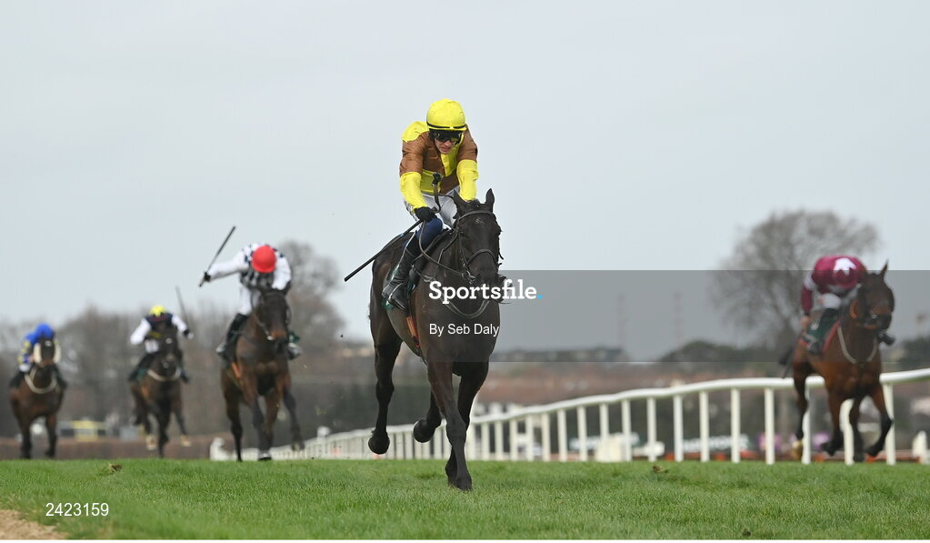 4 February 2023; Galopin Des Champs, with Paul Townend up, on their way to winning the Paddy Power Irish Gold Cup on day one of the Dublin Racing Festival at Leopardstown Racecourse in Dublin. Photo by Seb Daly/Sportsfile