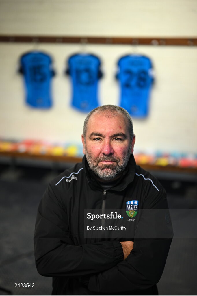 4 February 2023; Manager Andrew Myler poses for a portrait during a UCD squad portrait session at UCD Bowl in Dublin. Photo by Stephen McCarthy/Sportsfile