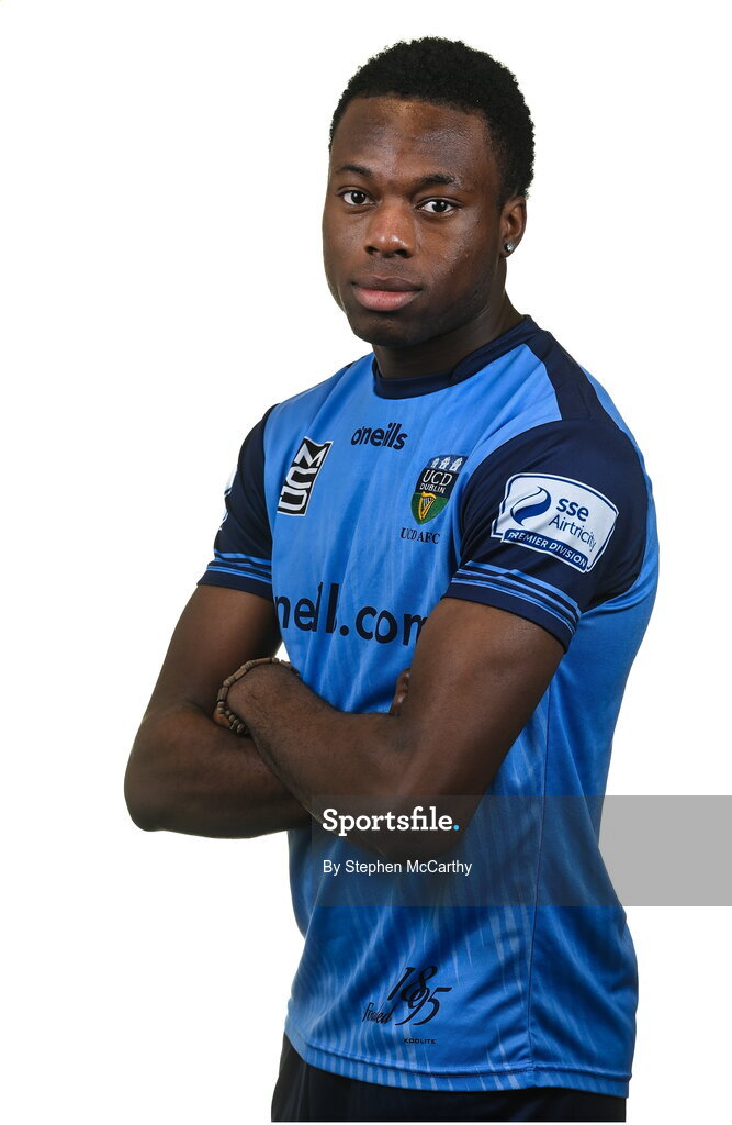 4 February 2023; Divine Izekor poses for a portrait during a UCD squad portrait session at UCD Bowl in Dublin. Photo by Stephen McCarthy/Sportsfile