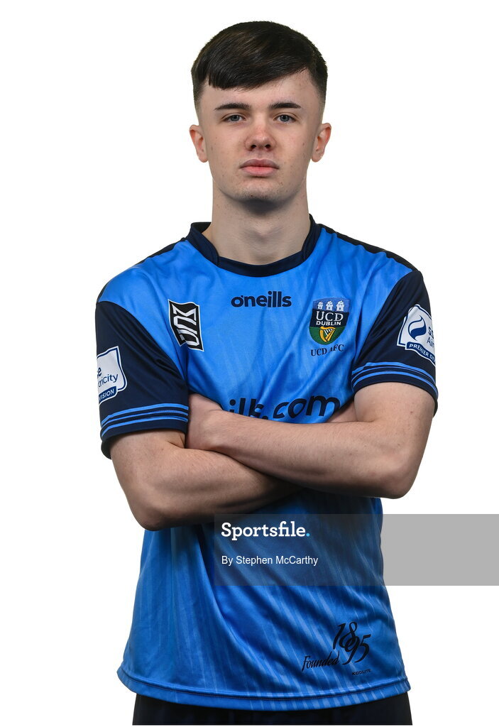 4 February 2023; Harry O'Connor poses for a portrait during a UCD squad portrait session at UCD Bowl in Dublin. Photo by Stephen McCarthy/Sportsfile