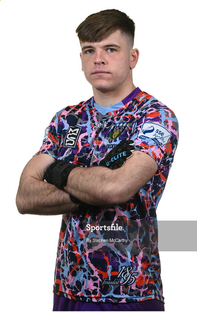 4 February 2023; Goalkeeper Kian Moore poses for a portrait during a UCD squad portrait session at UCD Bowl in Dublin. Photo by Stephen McCarthy/Sportsfile