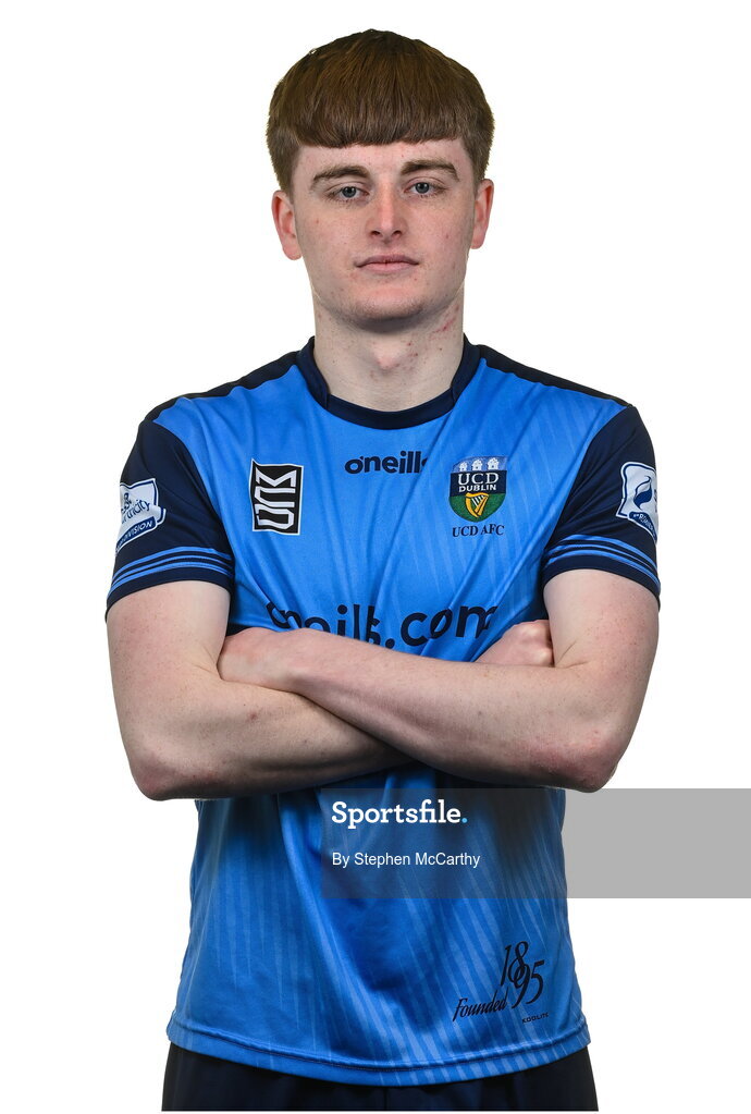 4 February 2023; Jamie Duggan poses for a portrait during a UCD squad portrait session at UCD Bowl in Dublin. Photo by Stephen McCarthy/Sportsfile