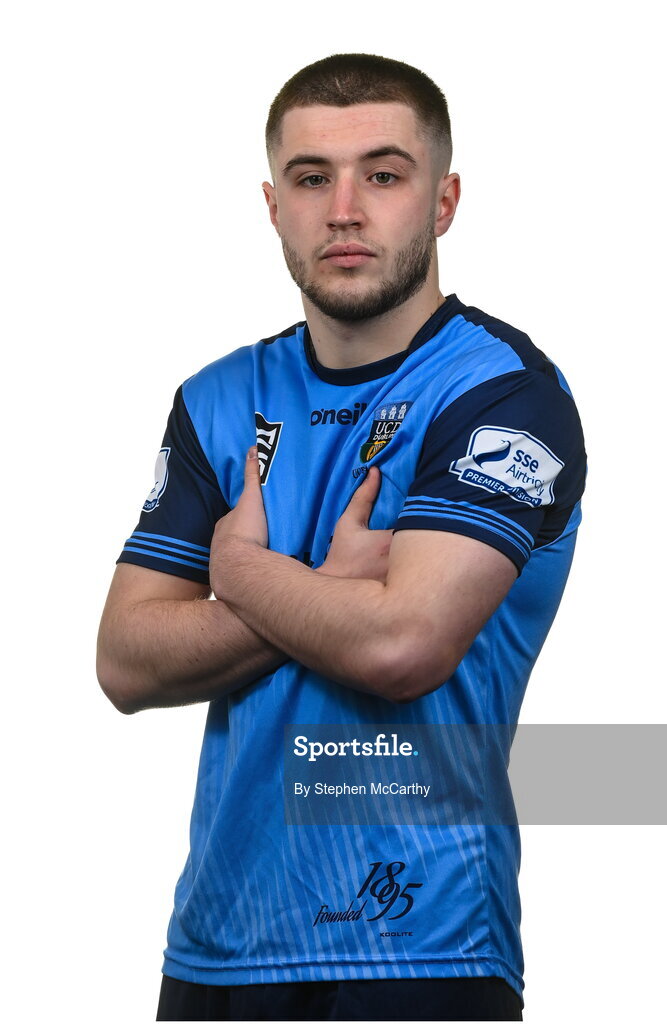 4 February 2023; Alex Dunne poses for a portrait during a UCD squad portrait session at UCD Bowl in Dublin. Photo by Stephen McCarthy/Sportsfile
