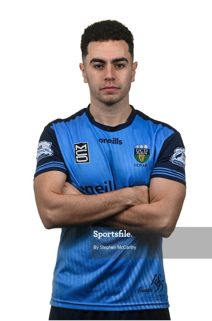 4 February 2023; Evan Osam poses for a portrait during a UCD squad portrait session at UCD Bowl in Dublin. Photo by Stephen McCarthy/Sportsfile