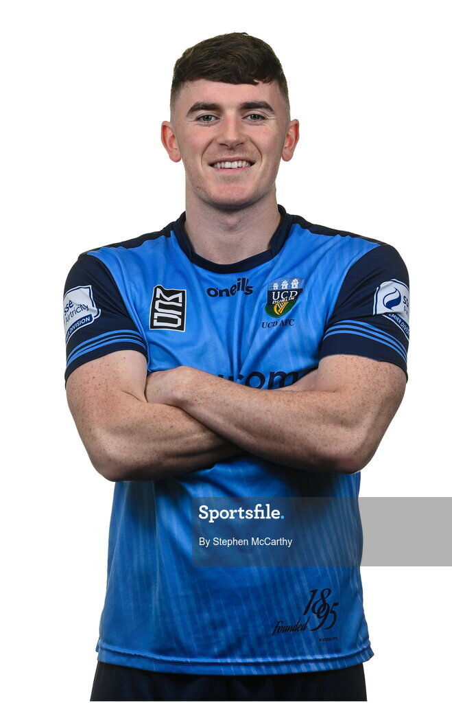4 February 2023; Michael Gallagher poses for a portrait during a UCD squad portrait session at UCD Bowl in Dublin. Photo by Stephen McCarthy/Sportsfile