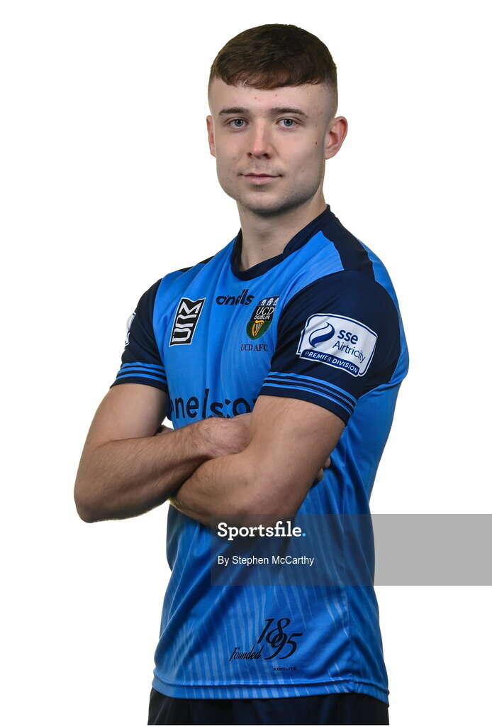 4 February 2023; Adam Wells poses for a portrait during a UCD squad portrait session at UCD Bowl in Dublin. Photo by Stephen McCarthy/Sportsfile