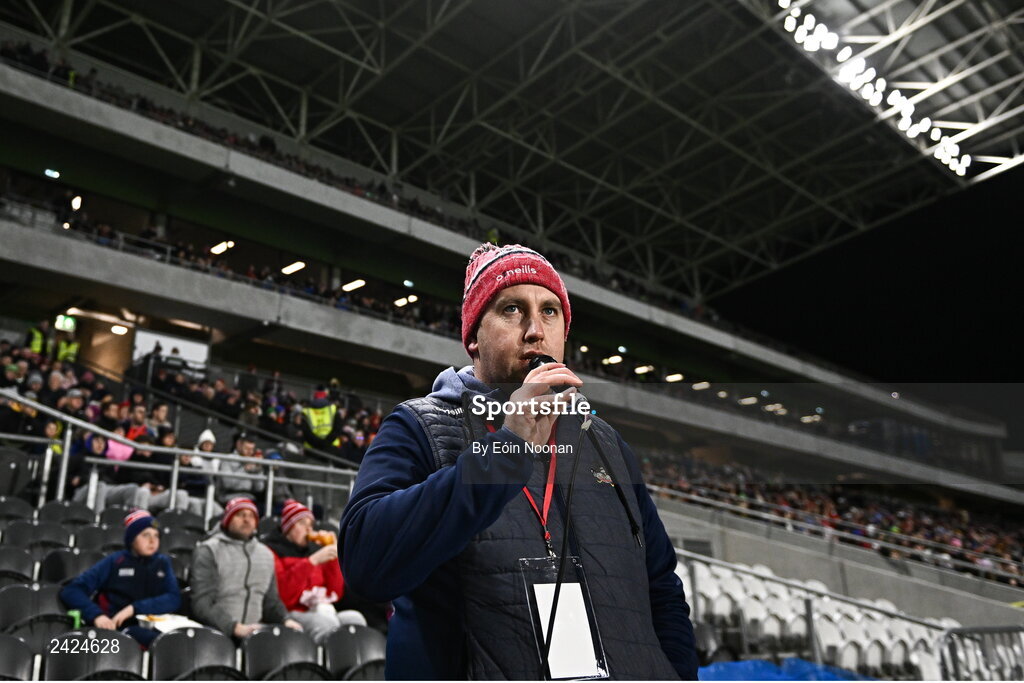 4 February 2023; Stadium announcer Cian O'Brien during the Allianz Hurling League Division 1 Group A match between Cork and Limerick at Páirc Ui Chaoimh in Cork. Photo by Eóin Noonan/Sportsfile