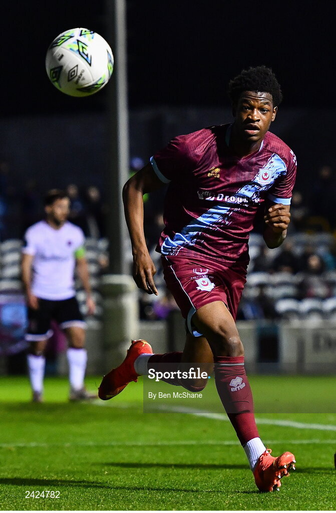 3 February 2023; Elicha Ahui of Drogheda United during the Jim Malone Cup match between Drogheda United and Dundalk at Weaver's Park in Drogheda, Louth. Photo by Ben McShane/Sportsfile