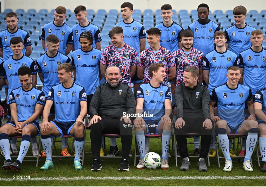 4 February 2023; UCD players and staff have their squad photograph taken during a UCD squad portrait session at UCD Bowl in Dublin. Photo by Stephen McCarthy/Sportsfile
