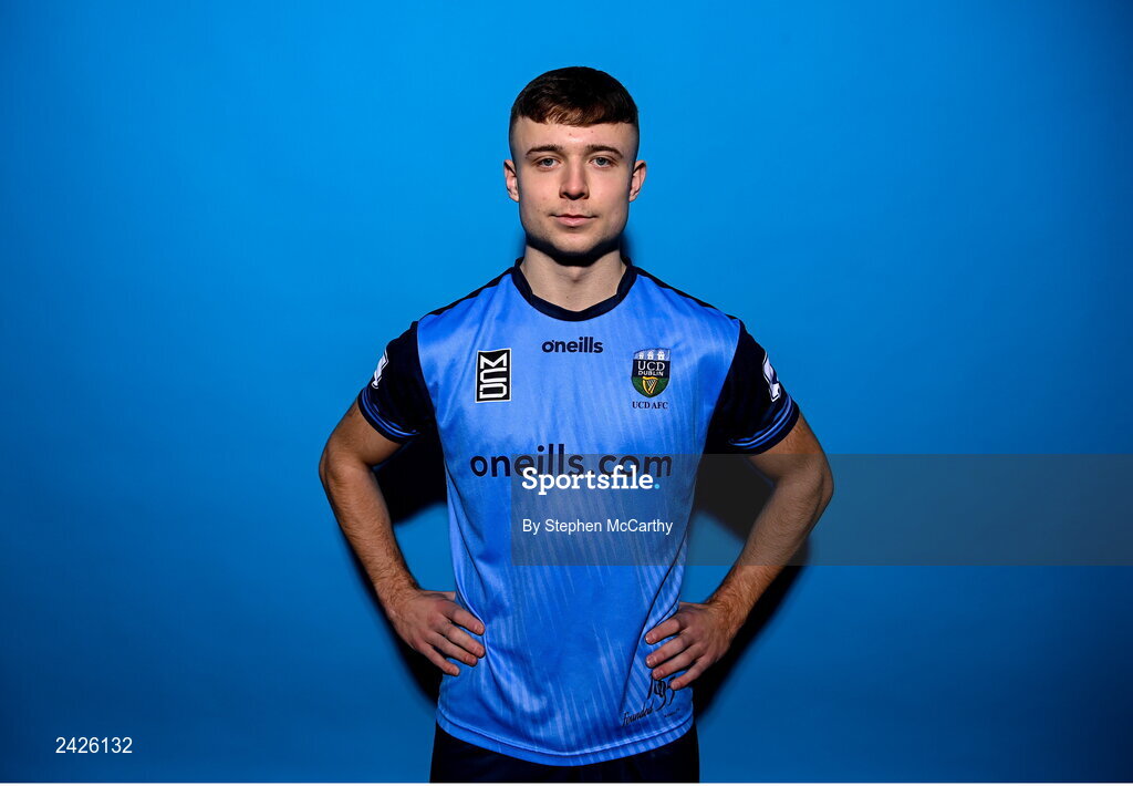 4 February 2023; Adam Wells poses for a portrait during a UCD squad portrait session at UCD Bowl in Dublin. Photo by Stephen McCarthy/Sportsfile