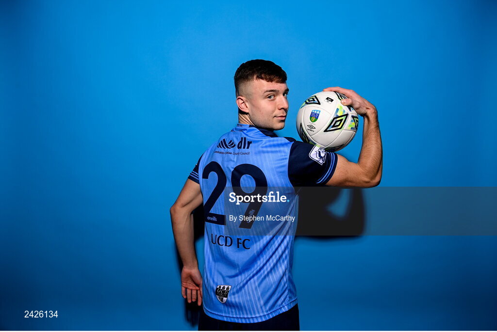 4 February 2023; Adam Wells poses for a portrait during a UCD squad portrait session at UCD Bowl in Dublin. Photo by Stephen McCarthy/Sportsfile