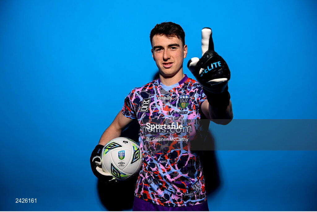 4 February 2023; Goalkeeper Lorcan Healy poses for a portrait during a UCD squad portrait session at UCD Bowl in Dublin. Photo by Stephen McCarthy/Sportsfile
