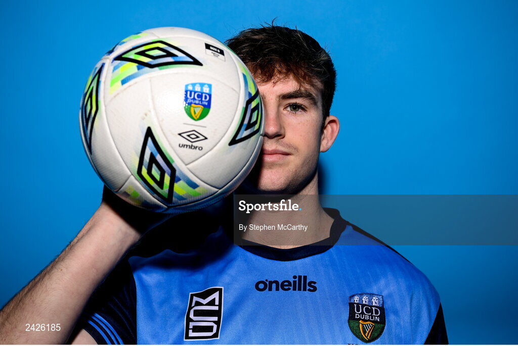 4 February 2023; Ciaran Behan poses for a portrait during a UCD squad portrait session at UCD Bowl in Dublin. Photo by Stephen McCarthy/Sportsfile