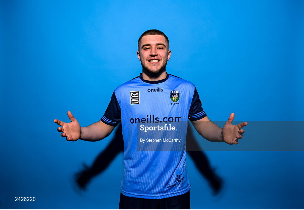 4 February 2023; Alex Dunne poses for a portrait during a UCD squad portrait session at UCD Bowl in Dublin. Photo by Stephen McCarthy/Sportsfile