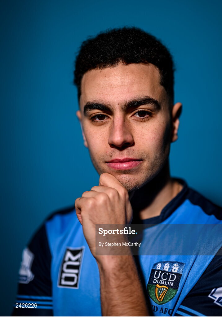 4 February 2023; Evan Osam poses for a portrait during a UCD squad portrait session at UCD Bowl in Dublin. Photo by Stephen McCarthy/Sportsfile