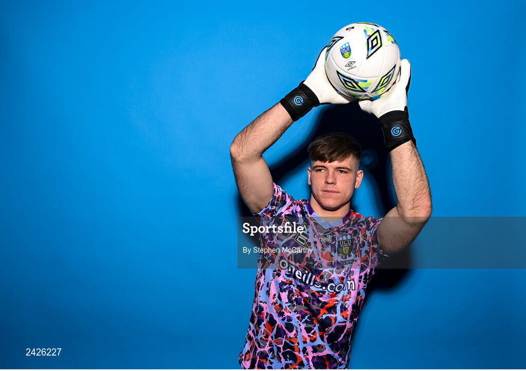 4 February 2023; Goalkeeper Kian Moore poses for a portrait during a UCD squad portrait session at UCD Bowl in Dublin. Photo by Stephen McCarthy/Sportsfile