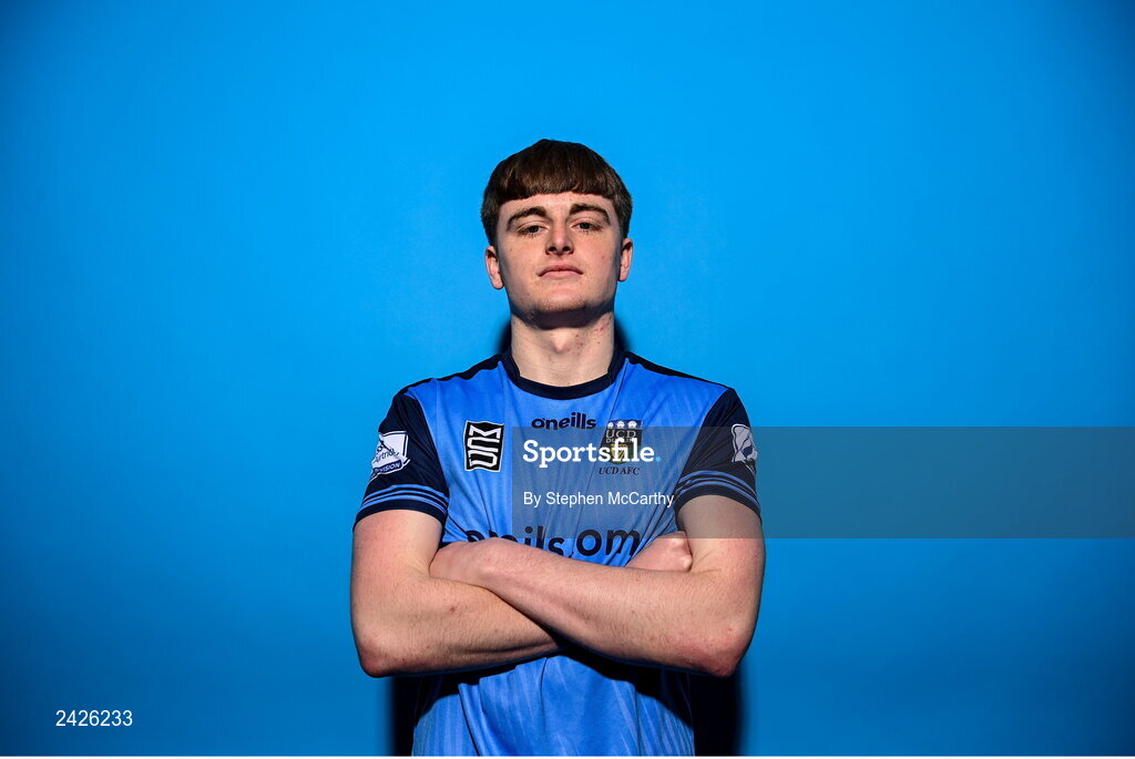 4 February 2023; Jamie Duggan poses for a portrait during a UCD squad portrait session at UCD Bowl in Dublin. Photo by Stephen McCarthy/Sportsfile
