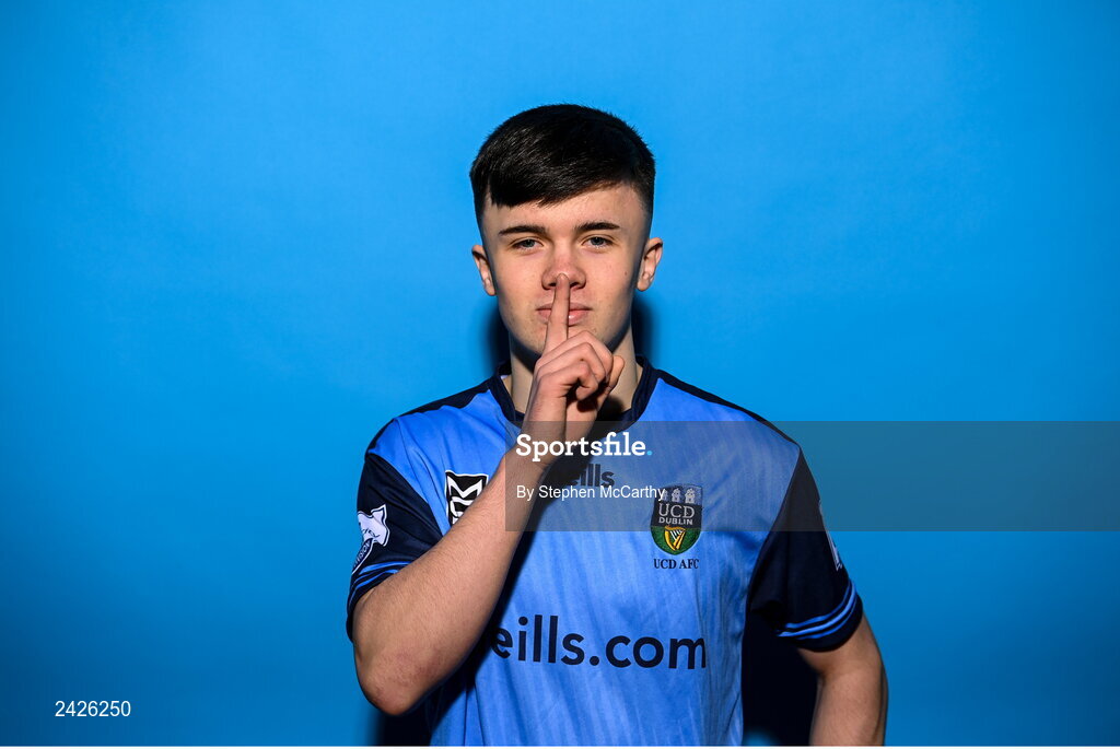 4 February 2023; Harry O'Connor poses for a portrait during a UCD squad portrait session at UCD Bowl in Dublin. Photo by Stephen McCarthy/Sportsfile